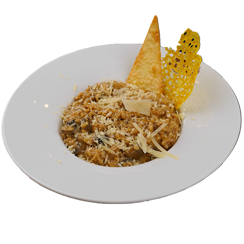 Risotto rice, beef broth, onion, butter, cream, Parmesan cheese, mushrooms